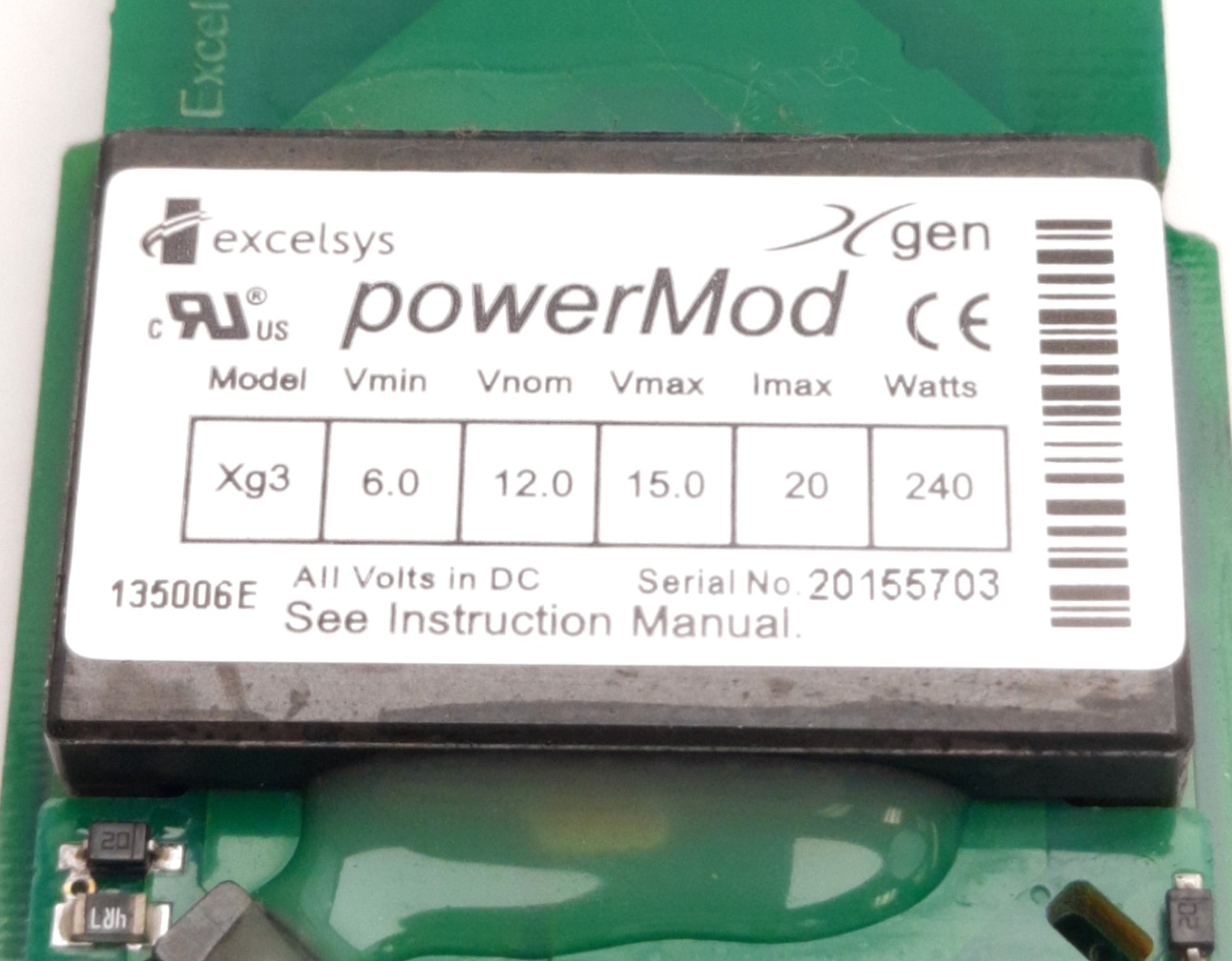 Used Excelsys Xg3 PowerMod Power Supply Module For XLD, 12V DC, 20A 240W Output