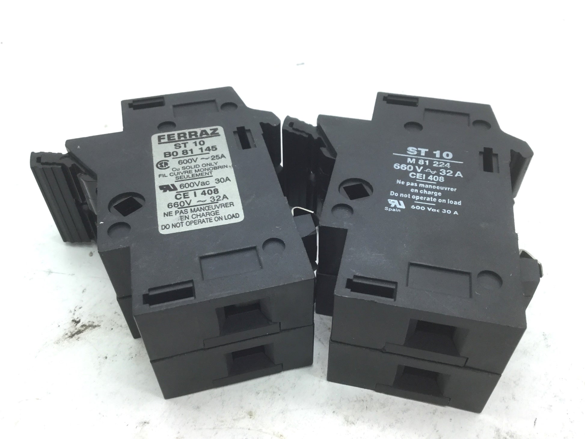 Used Ferraz ST 10 M 81 224 & ST 10 B0 81 145 Fuse Holders, Rating 600V 30A 2 Pole