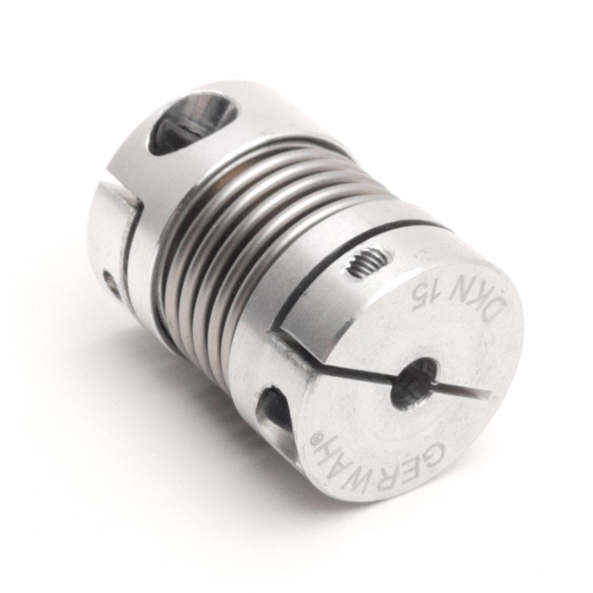 Used Gerwah DKN15-28-4mm-3/8" Metal Bellows Coupling, 3/8" x 4mm Bore, 20mm OD