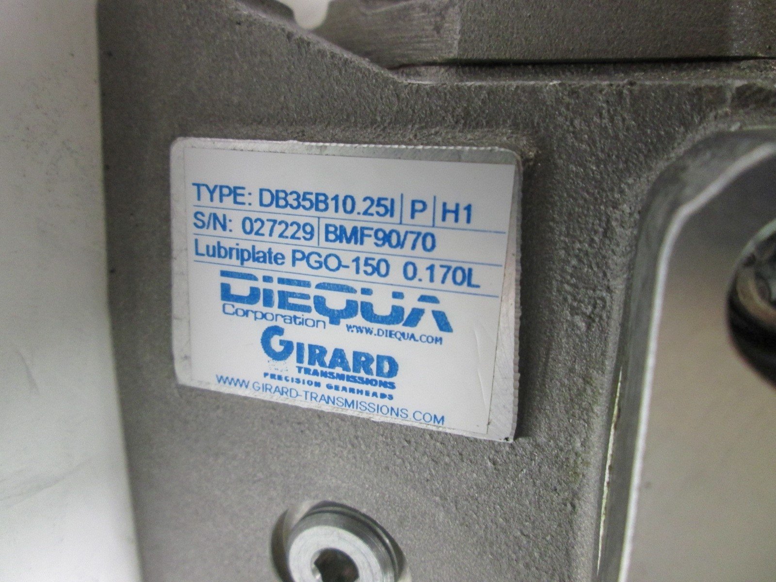 Used Girard Transmissions DB35B10.25I Gear Reducer Precision Gearhead .985 Shaft 10:1