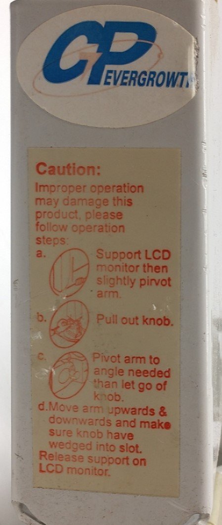 Item Condition: Used SKU: SB-121604 R1-2-B From our inventory, we are selling a GP Evergrowth LCD/PC/TV Monitor Wall Mount Arm, Vesa Monitor Mount: 100mm.