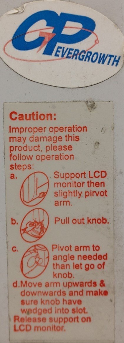 Item Condition: Used SKU: SB-121600 PA-3-B From our inventory, we are selling a GP Evergrowth LCD/PC/TV Monitor Wall Mount Arm, Vesa Monitor Mount: 75mm.