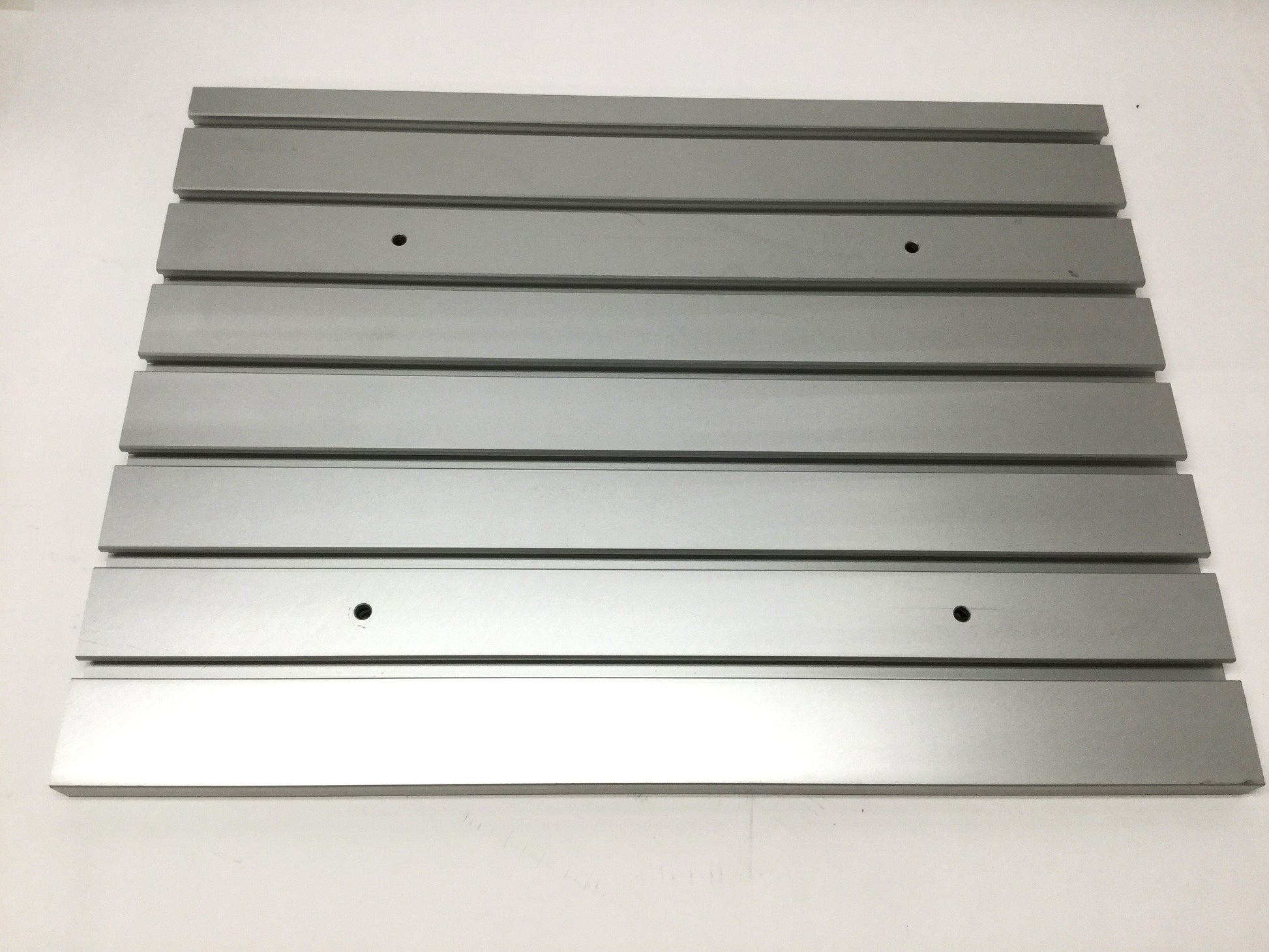 Item Condition: Used SKU: SB-200863 PJ-4-B From our inventory we are selling a T-Slot Aluminum Extrusion Double Sided T-Track Fixture Plate 24-7/16" x 14-3/4". Specifications: