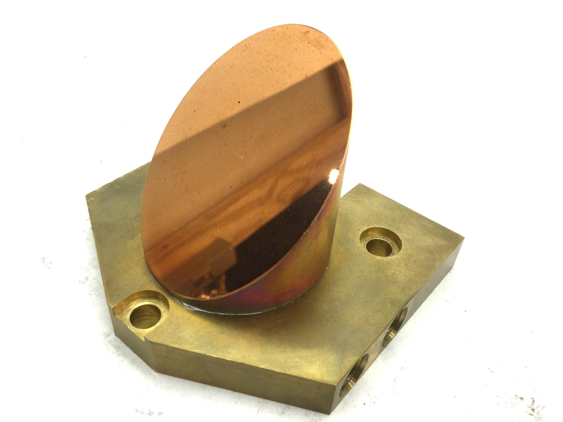 Used Kugler 15044 PF19599/17 Flat Copper Laser Mirror 90ø ?49.5 OFHC w/Cooling Plate