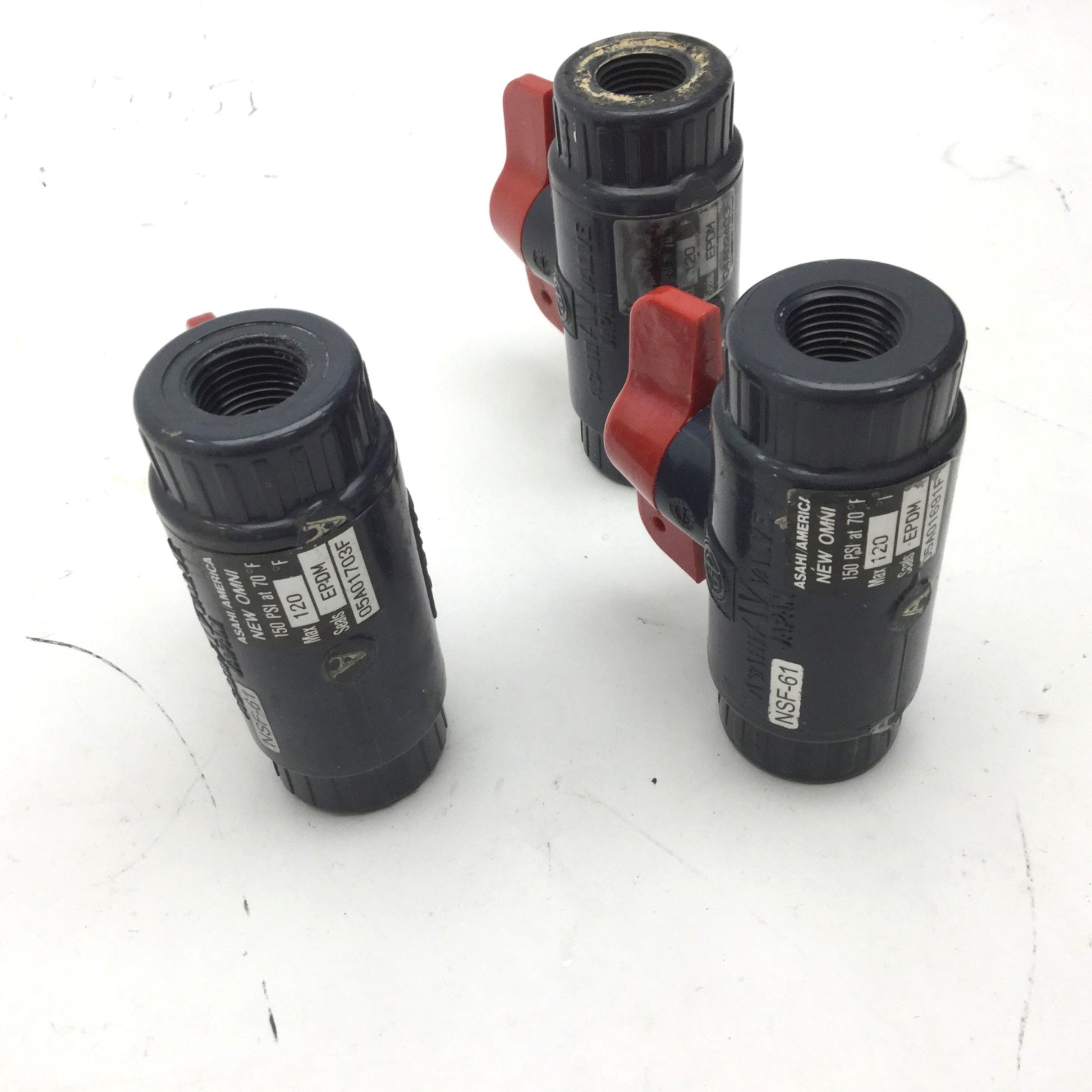 Used Lot of 3 Asahi AV Valve 13-3/8 Type C PVC Ball Valve, EPDM Seals, 150PSI