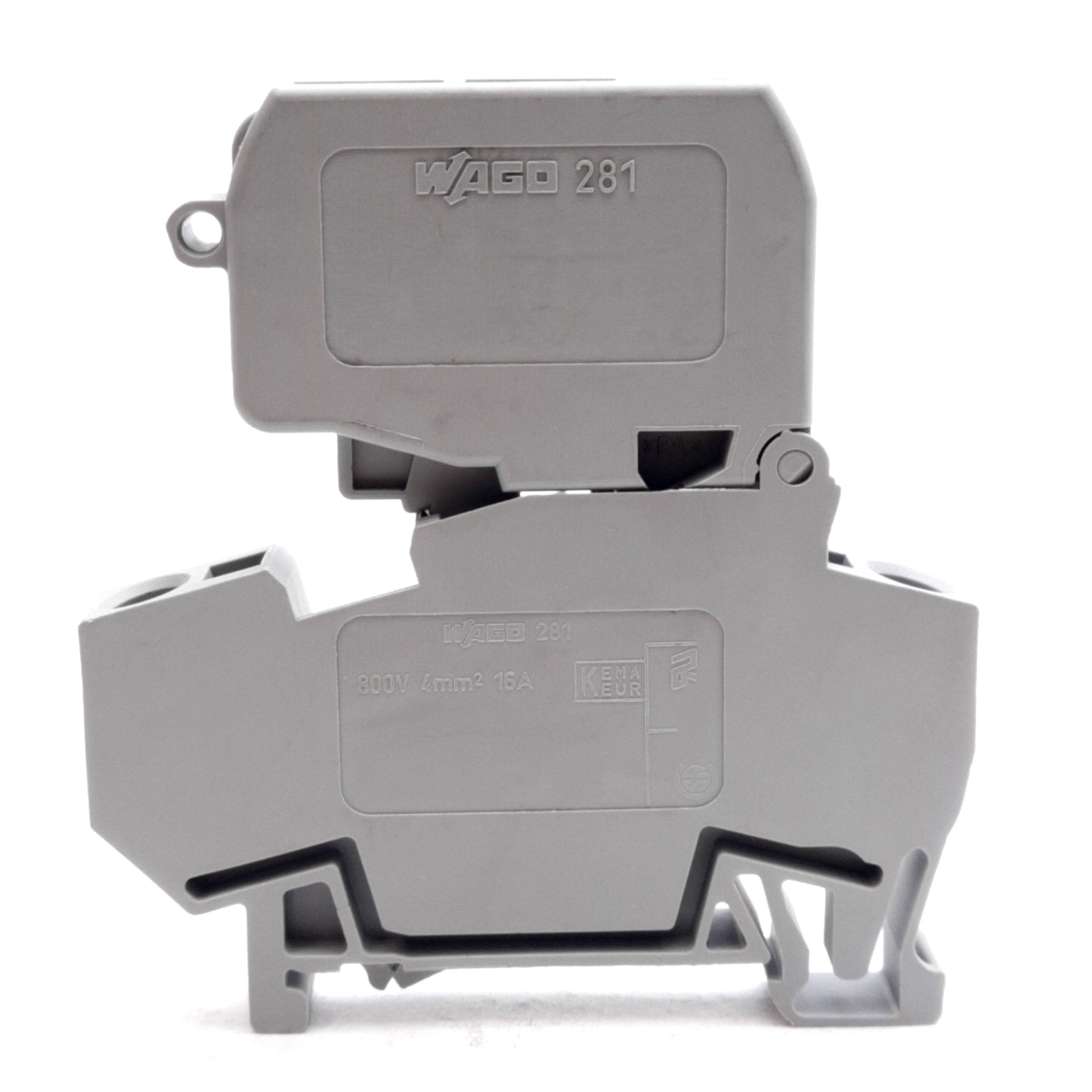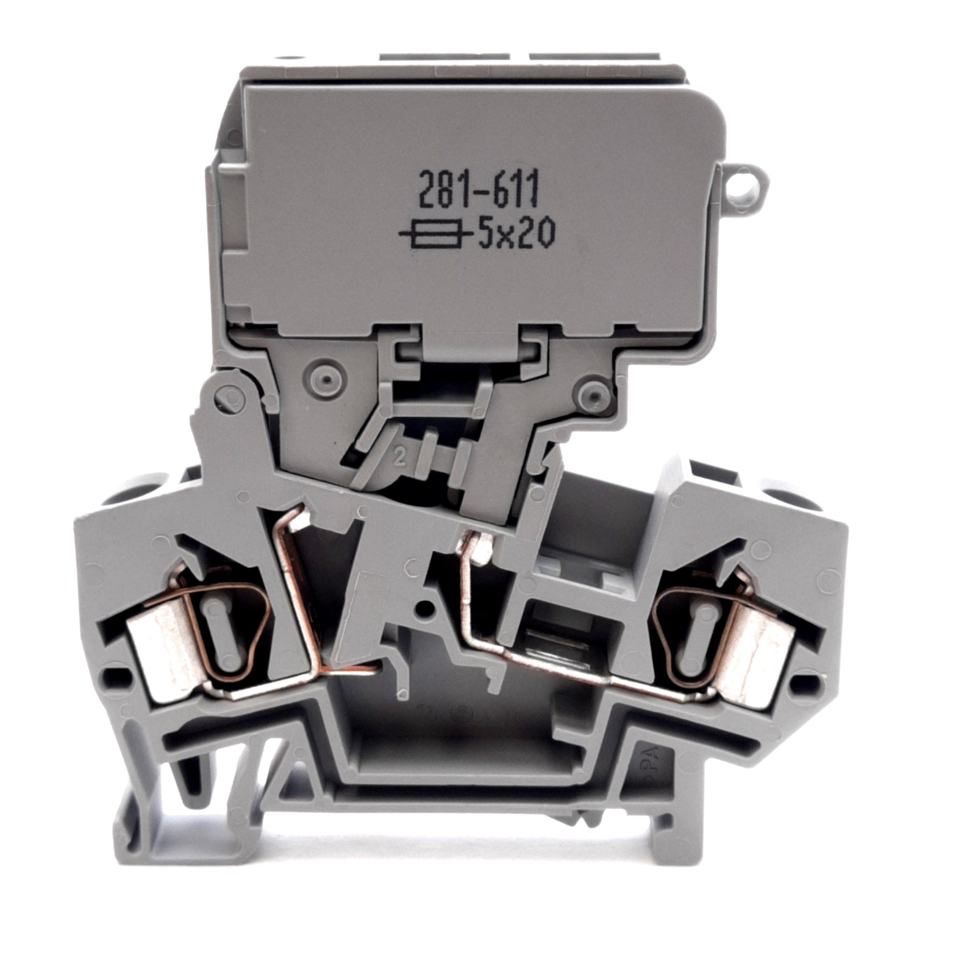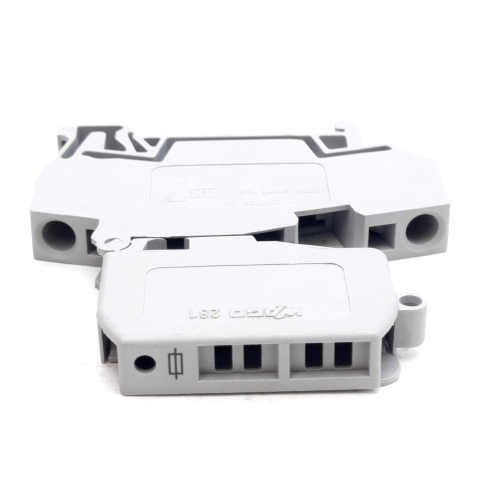 Used Lot of 5 Wago 281-611 Fused Terminal Blocks, 800V 16A, 5x20mm Fuses, DIN Rail