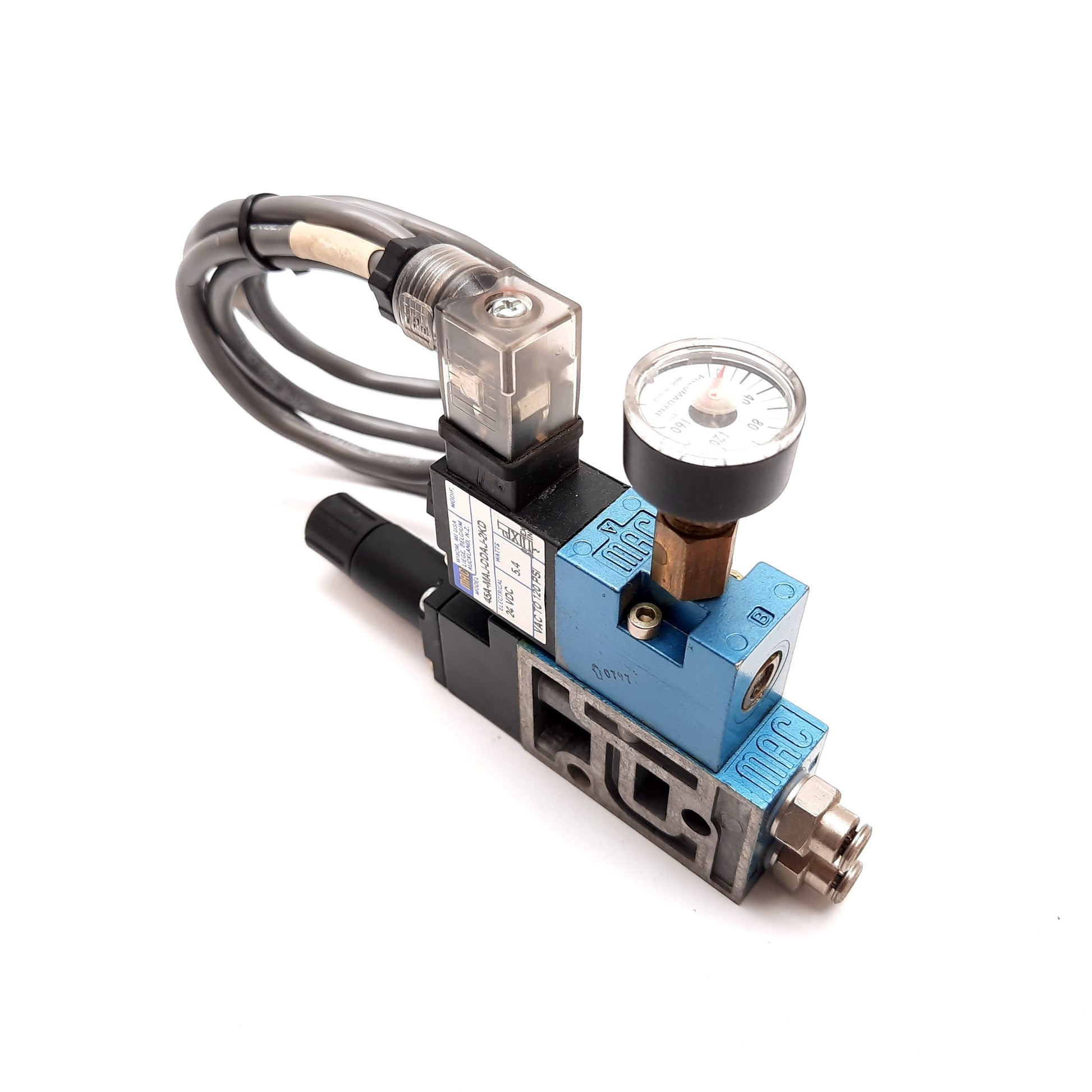 Used MAC 45A-MAJ-DDAJ-2KD Solenoid Valve, 2-Position 4-Port, 24VDC, With Regulator