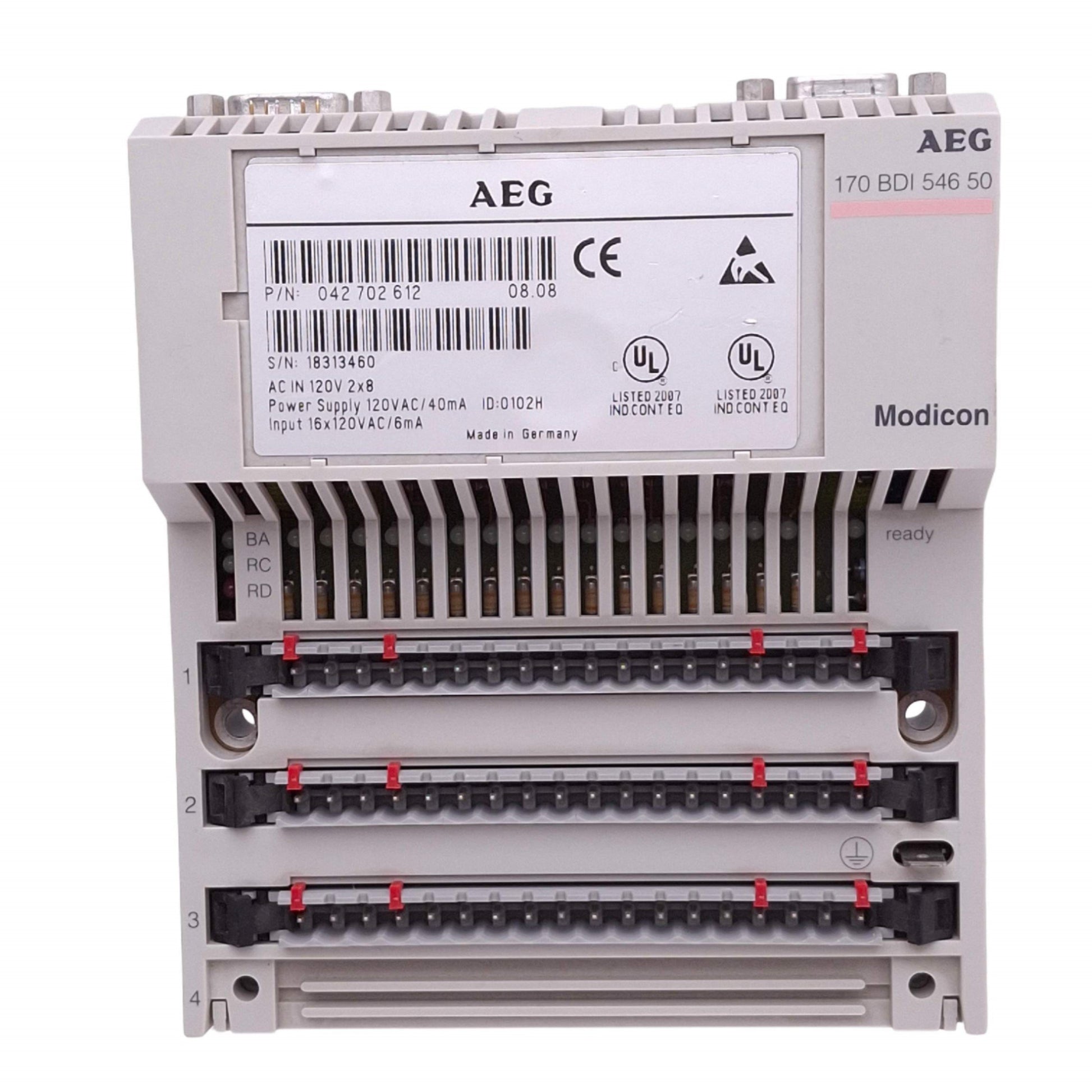 Used Modicon 170-BDI-546-50 PLC Input Module, 16 Input, 120VAC In, DIN Rail