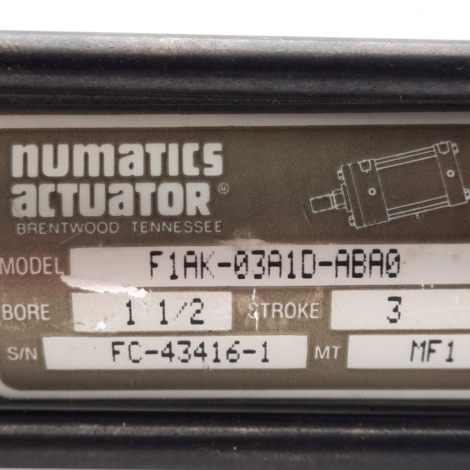 Used Numatics F1AK-03A1D-ABA0 Tie Rod Cylinder 1.5in Bore, 3in Stroke, 250PSI NPTF3/8