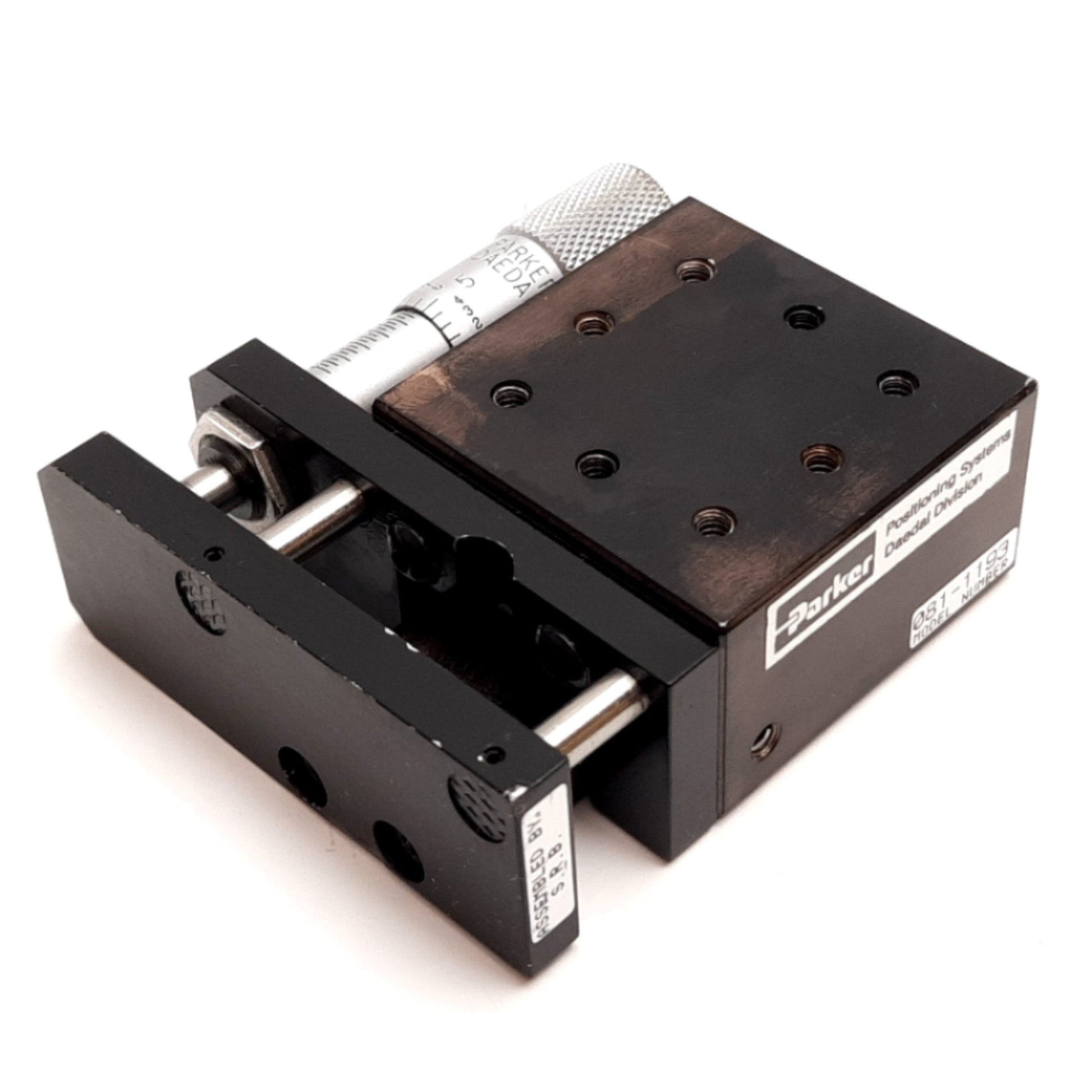 Used Parker 081-1193 Cross Roller Linear Positioning Stage, W/ Starrett Micrometer
