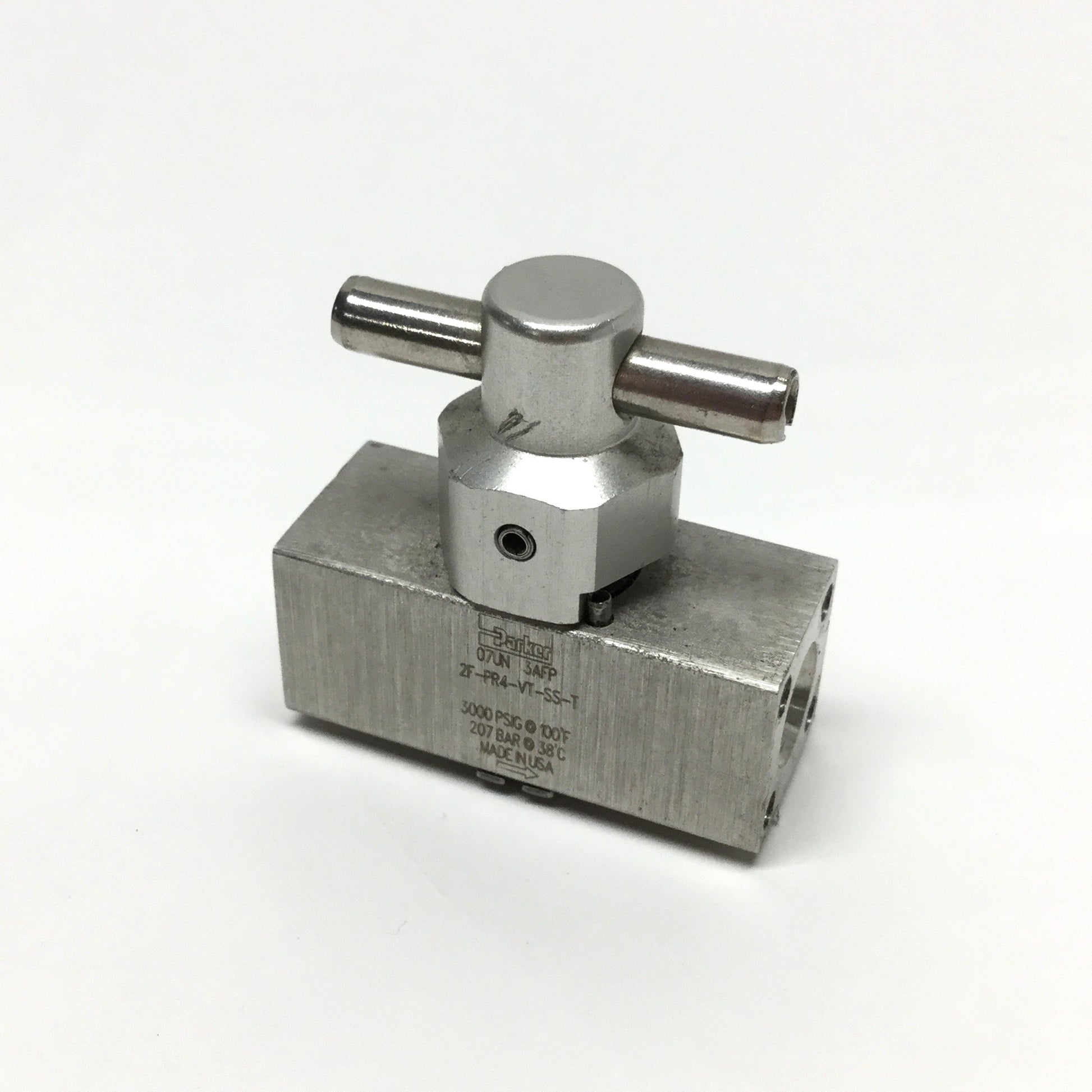 Used Parker 2F-PR4-VT-SS-T Stainless Rotary Plug Valve, 1/4 Turn, 1/8" NPT, 3000psi