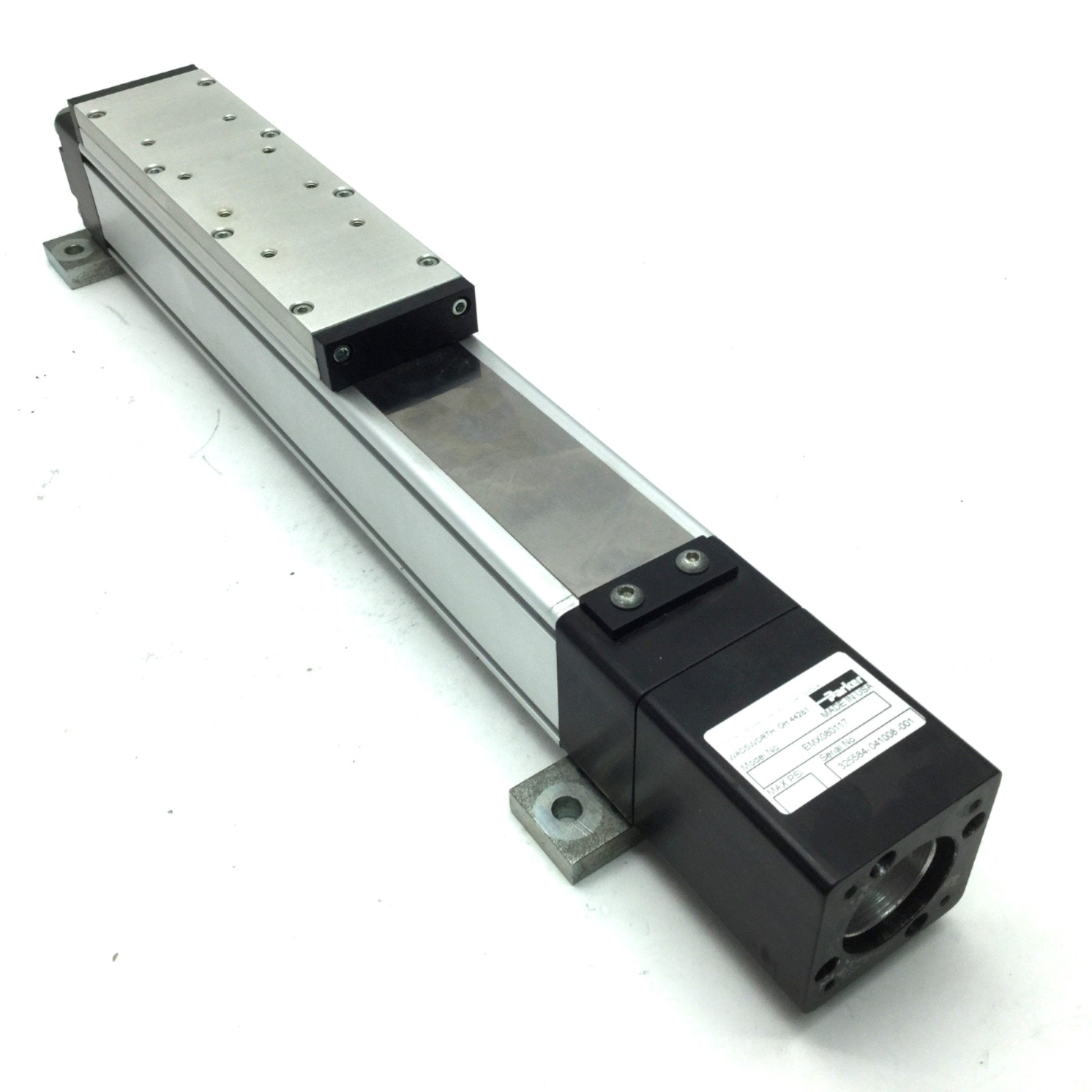 Used Parker EMX080117 Ball Screw Linear Actuator Lead 1/8", Travel 100mm, Bore 0.31"