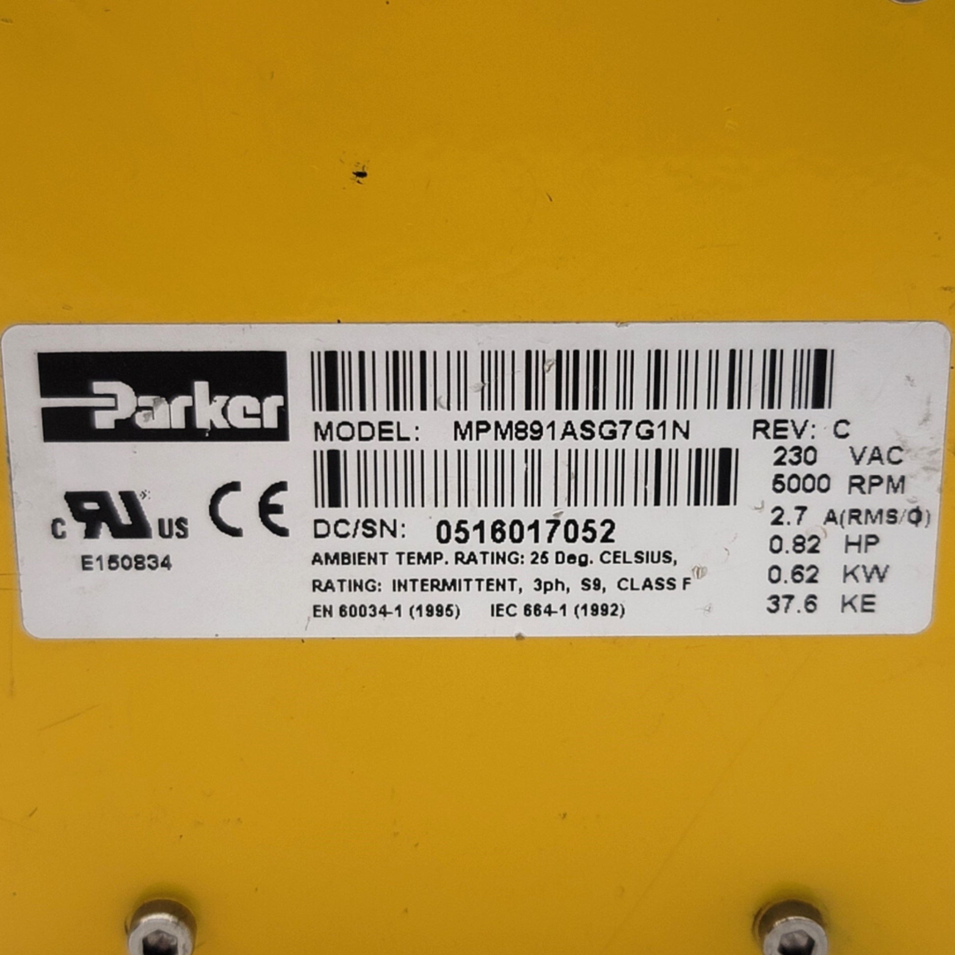 Used Parker MTS MPM891ASG7G1N MaxPlus Servo Motor 230VAC, 2.7A, 0.62kW, 89mm Frame