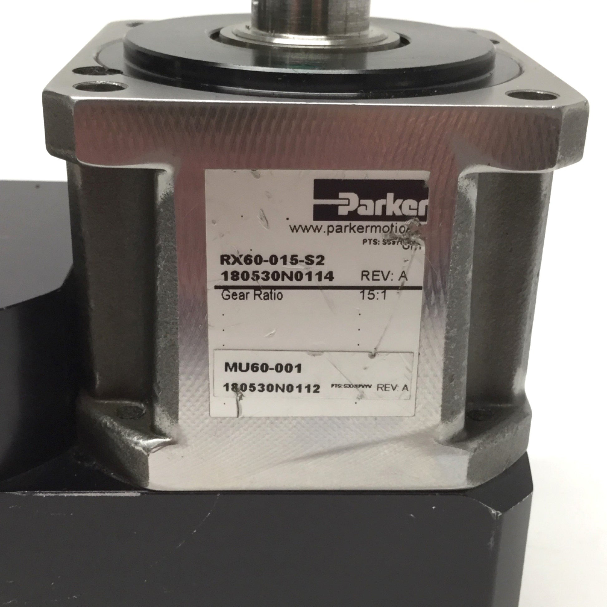 Used Parker RX60-015-S2 Right-Angle Planetary Gearhead 15:1 Ratio Ø5/8" In, Ø16mm Out
