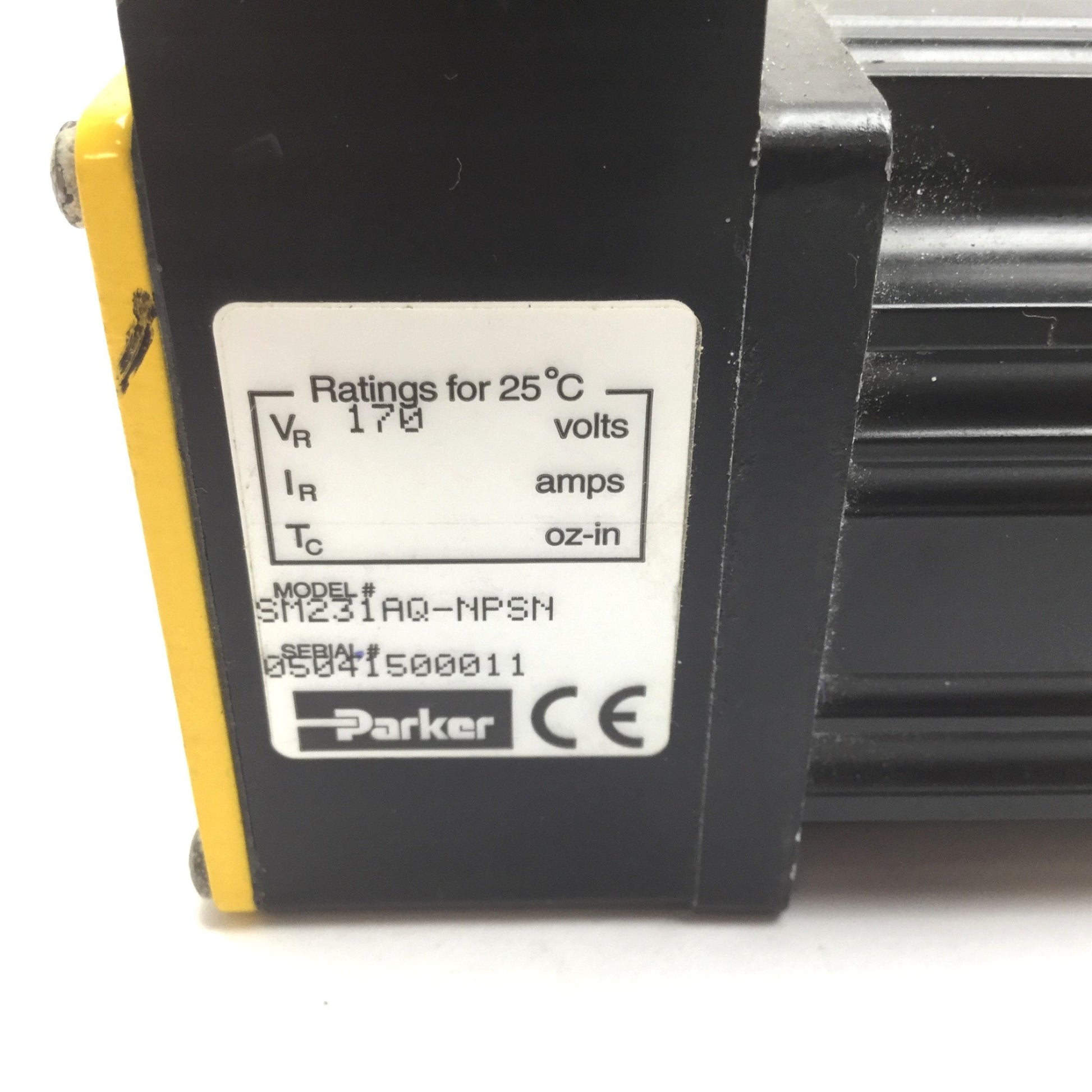 Used Parker SM231AQ-NPSN Servo Motor, NEMA 23 3/8" Shaft, 3.8 lb-in Torque, 170V 2.1A