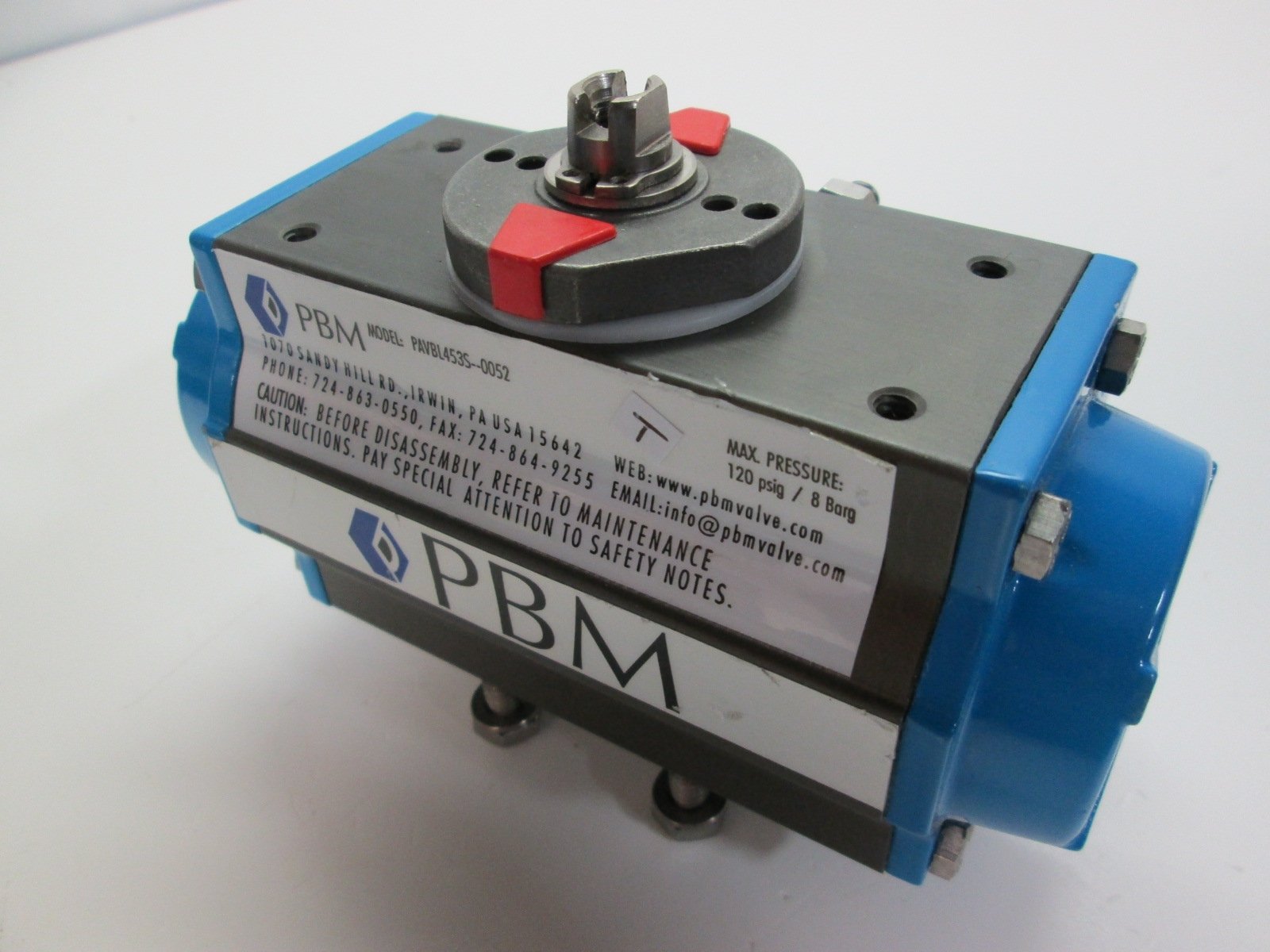 Used PBM PAVBL453S-0052 Pneumatic Actuator 120 PSIG Rack / Pinion Type Namur Mount