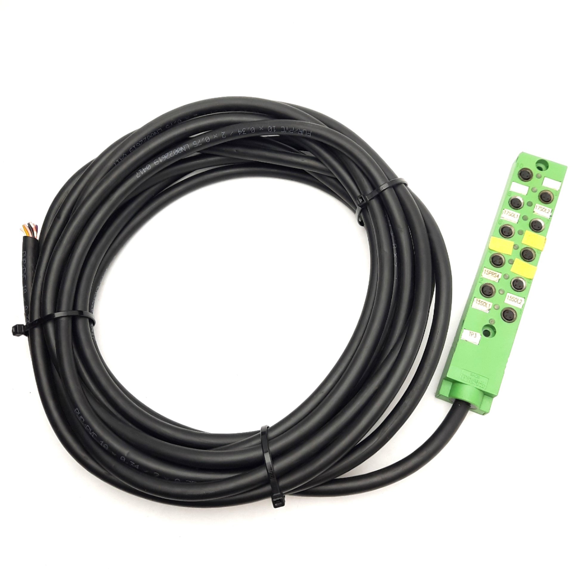 Used Phoenix Contact 1516085 SACB-10/3-L-10,0PUR-M8 Sensor Box, Ten M8 3-Pin Sockets