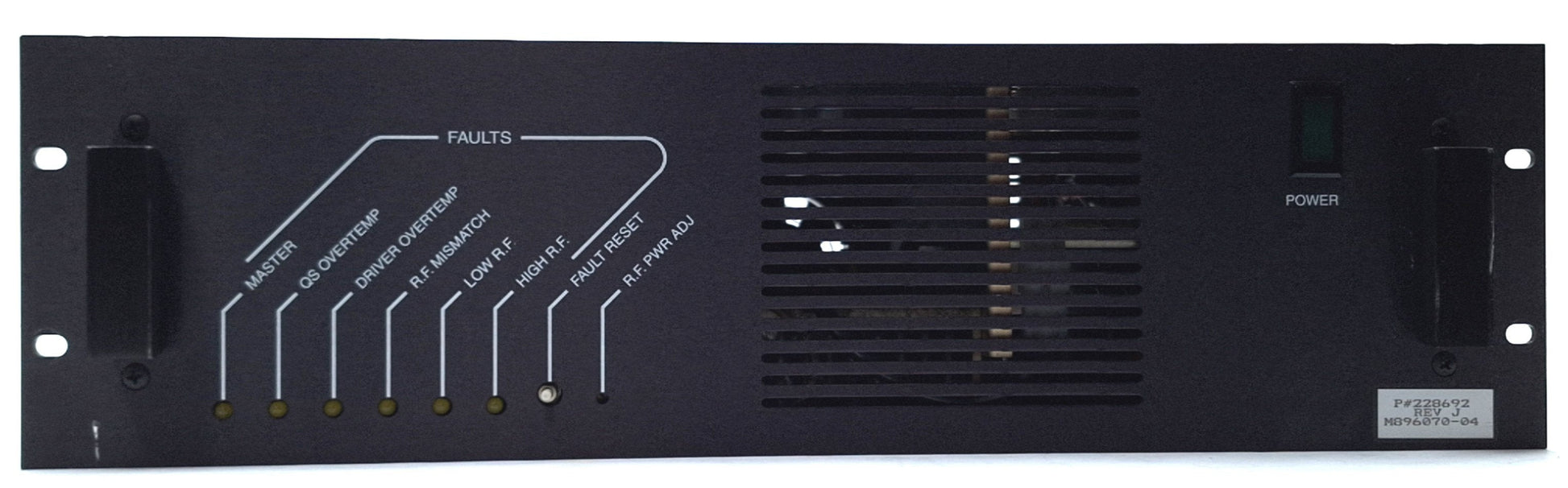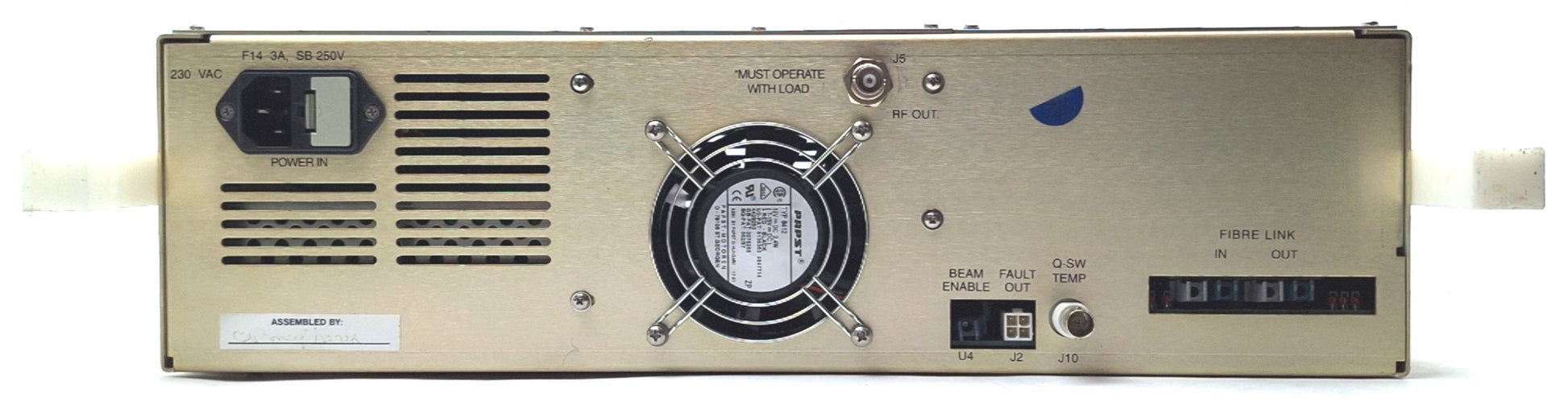 Item Condition: Used SKU: SB-188894 RM-3-A From our inventory we are selling a Quantronix 228692 Rev J LASER Radio Frequency Driver, 230VAC. Specifications: