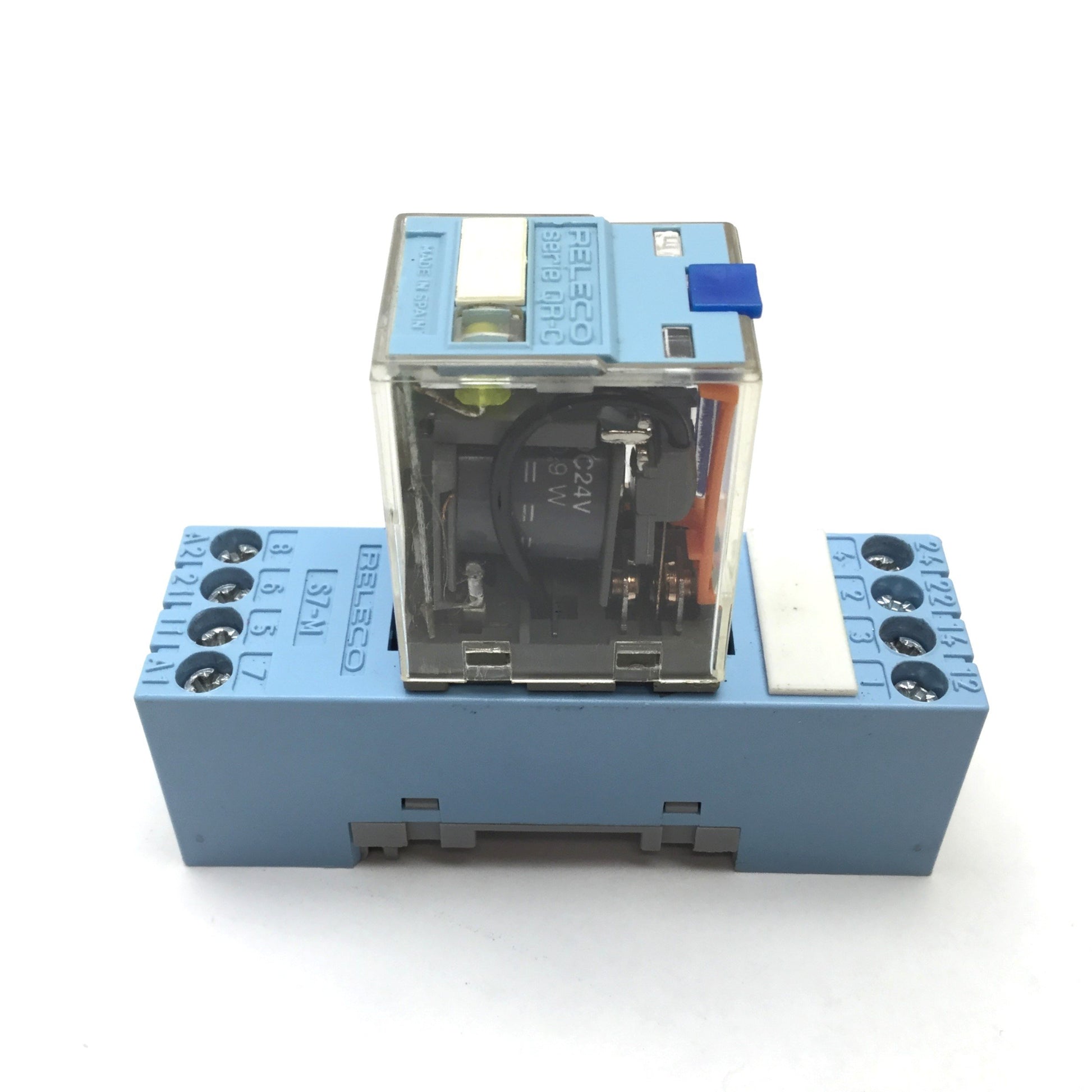 Used Releco C7-A20X Ice Cube Relay, DPDT, Coil: 24VDC, Rating: 10A 250V, With Socket
