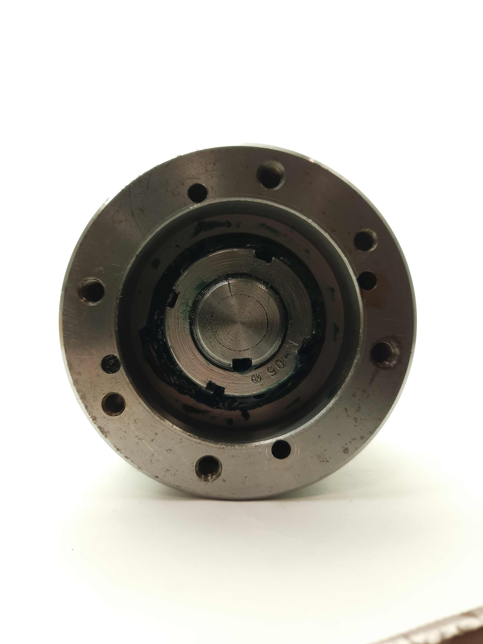 Used Stainless Steel Rotating Work Fixture, 360°, Ø3 5/8 x 3 3/16" w/Grease Nipple