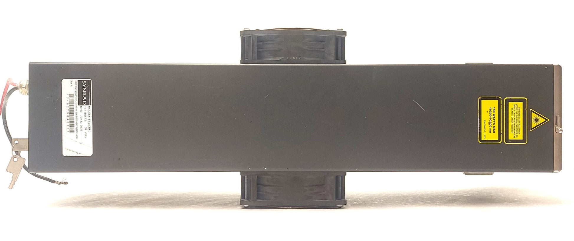 From our inventory we are selling a Synrad FSV40KFC V40 CO2 LASER Head 40W 10.6æm ?2.5mm Beam DB15 30VDC *No CO2*.