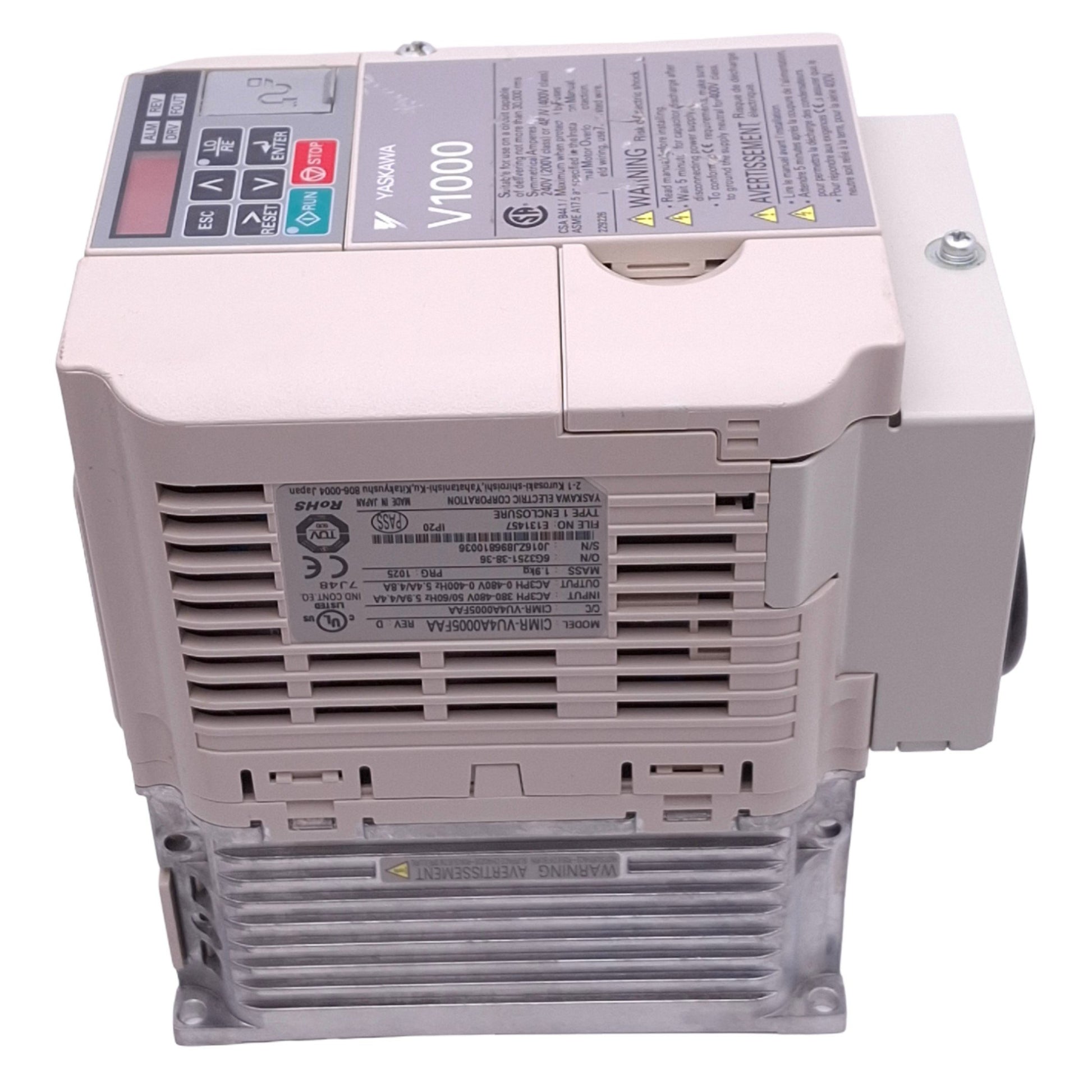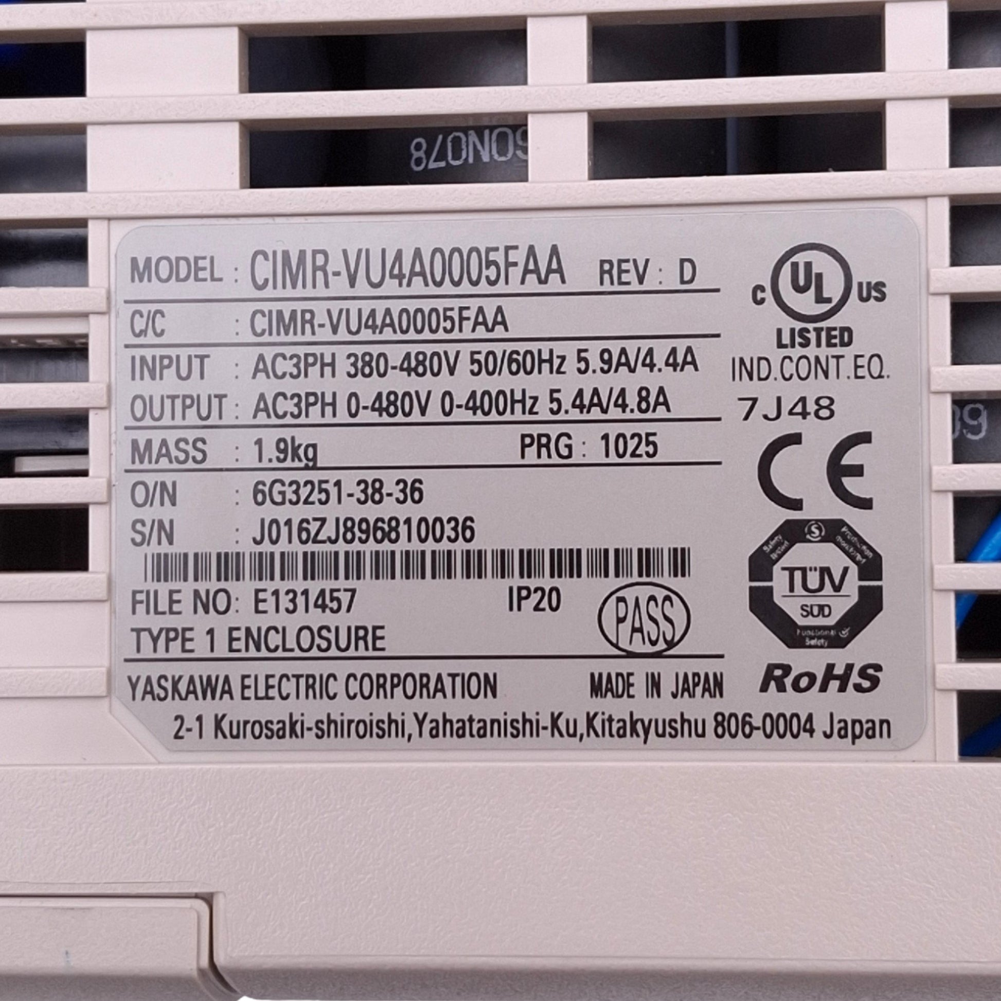 Used Yaskawa CIMR-VU4A0005FAA Variable Frequency Drive, 3ph 0-480VAC 0-400Hz, 3HP Max