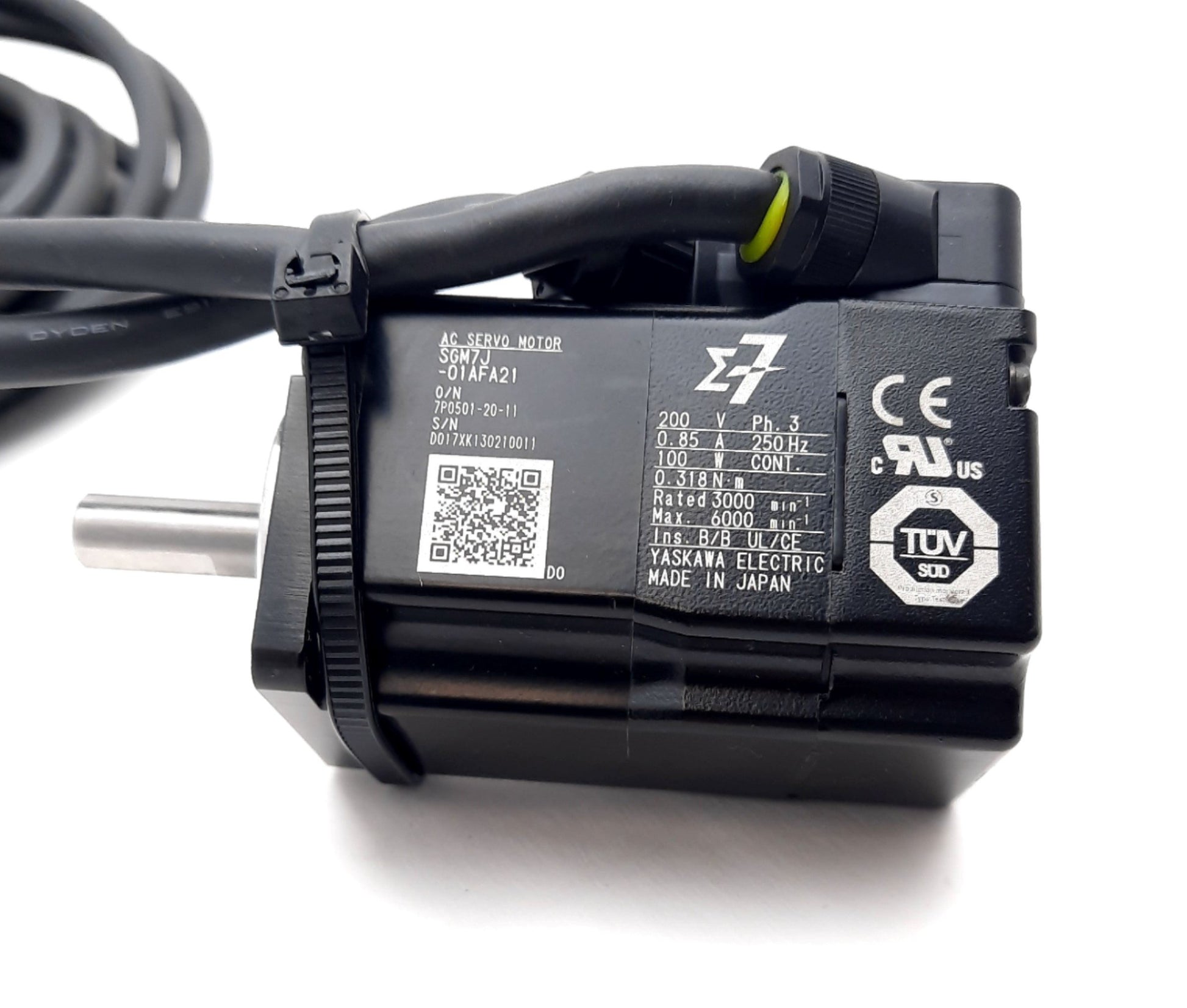 Used Yaskawa SGM7J-01AFA21 AC Servo Motor 3 Phase 200VAC 0.85A 100W 0.318Nm 30001/min